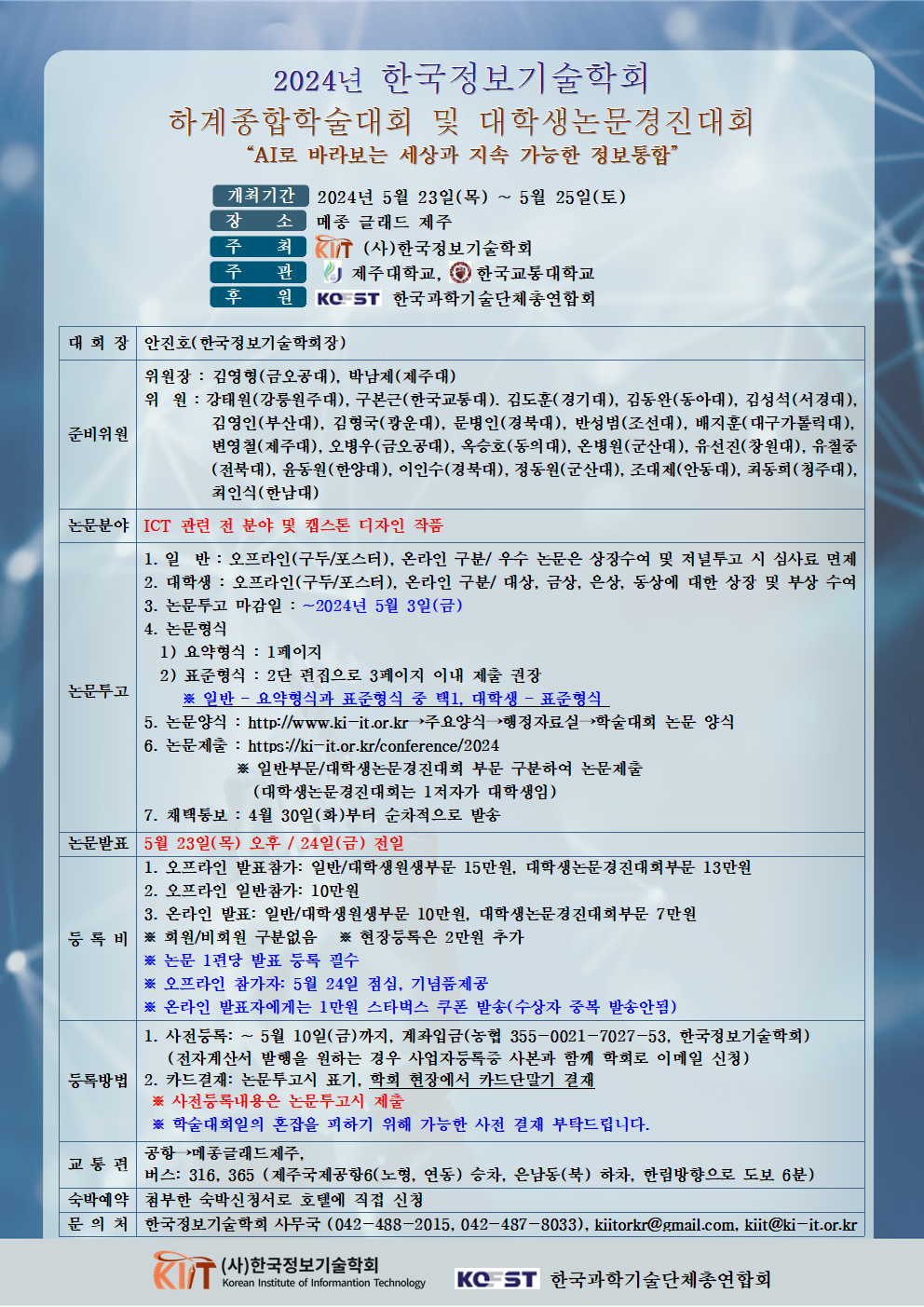 2024년 한국정보기술학회 하계종합학술대회 및 대학생논문경진대회 안내