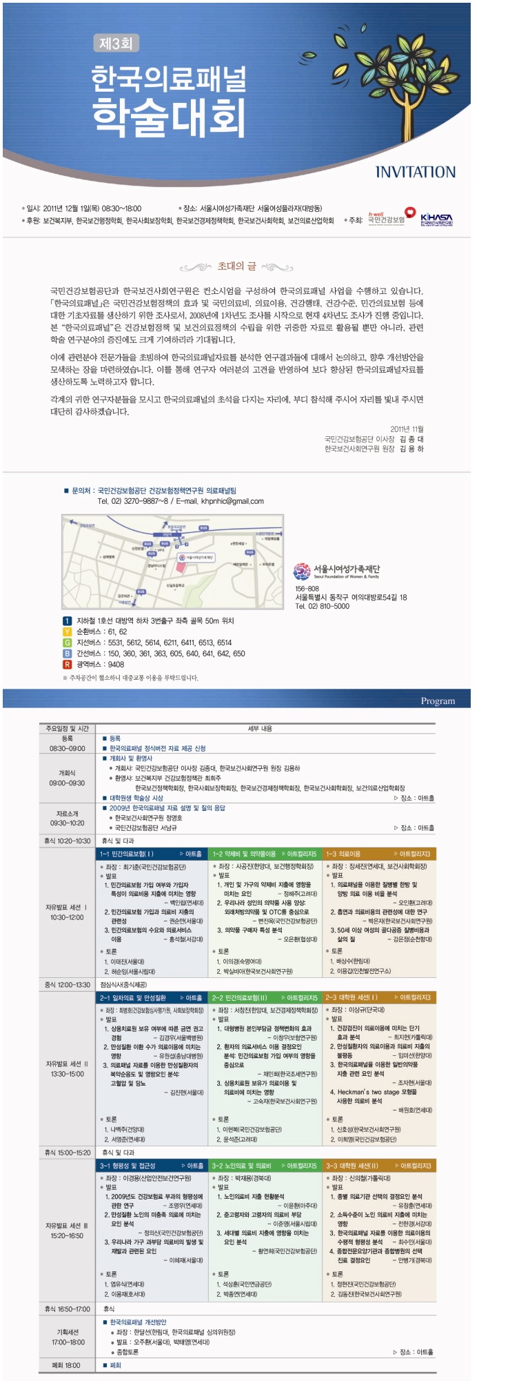 제 3회 한국의료패널 학술대회 안내 (2011-11-21)