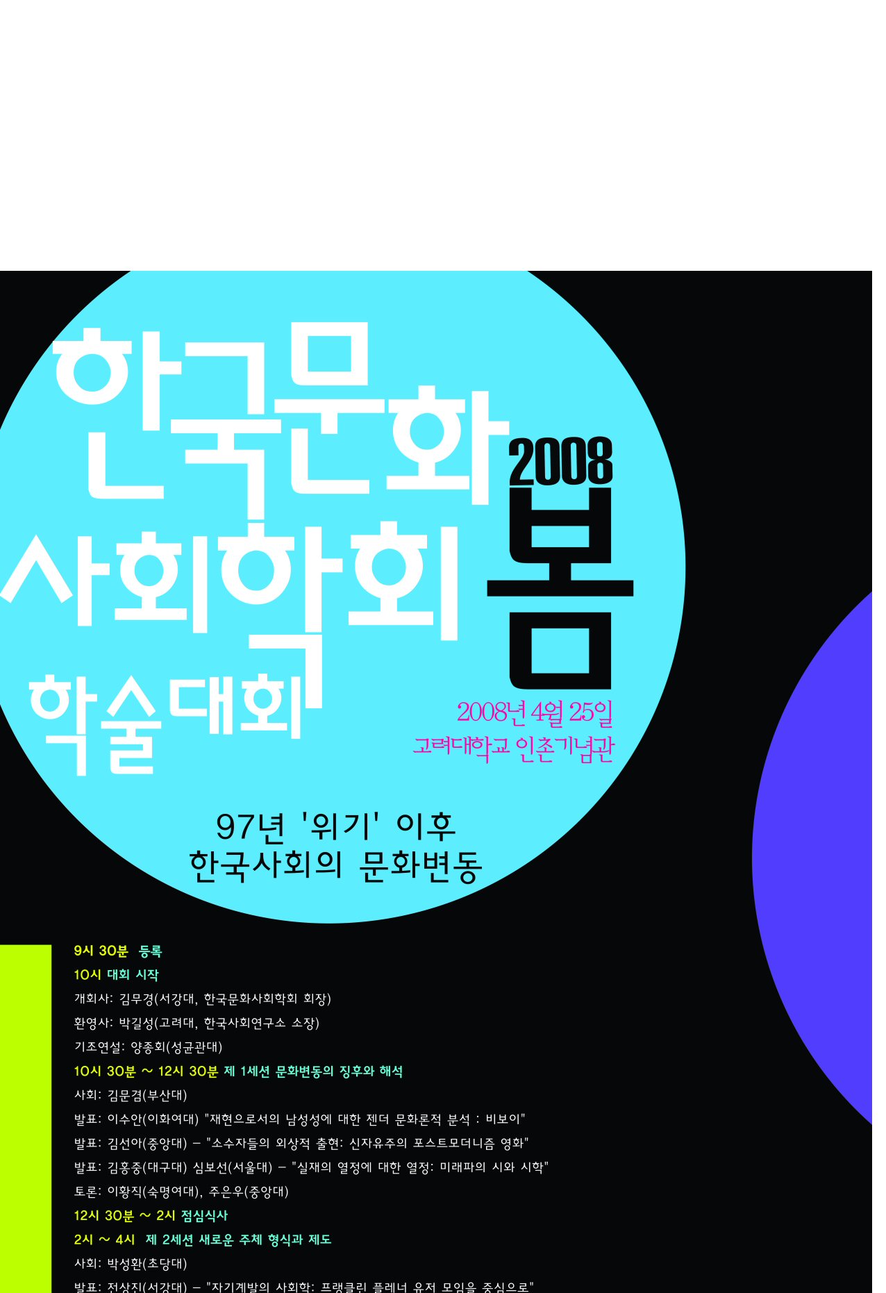 디자이너의 의도는 되도록이면 학술대회의 딱딱한 분위기를 피하고자 했다는 것인데 제 느낌으로는 너무 '팬시'한 것이 아닌가... 싶네요...