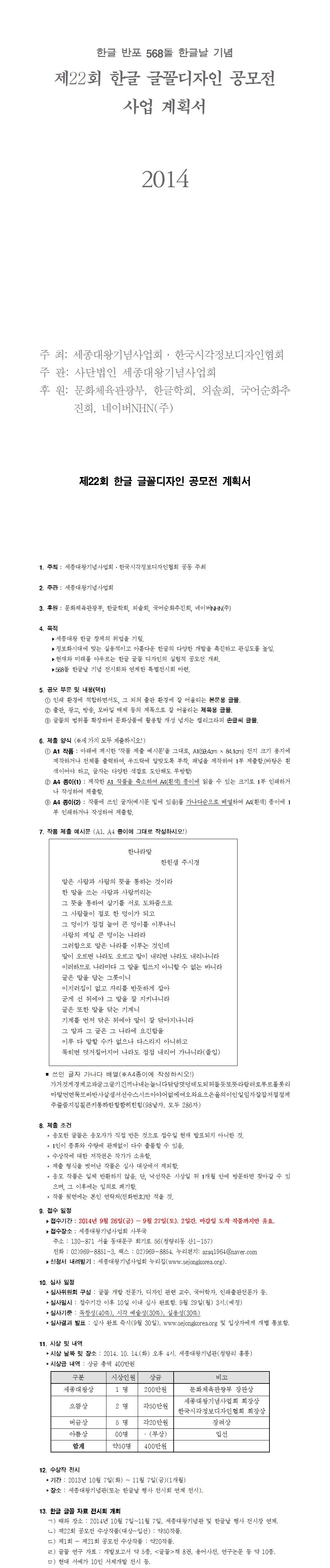 제22회 한글 글꼴공모전 계획서 및 접수신청서